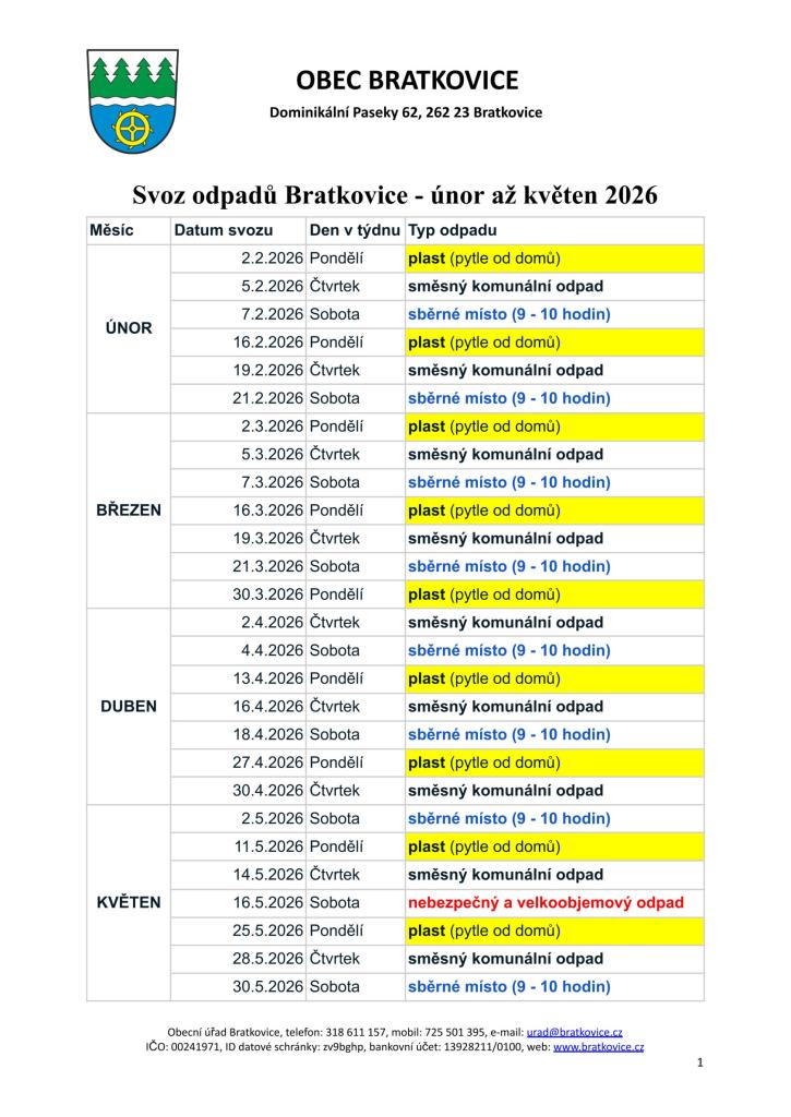 Kalendář pro období únor až květen 2026 je ke stažení zde (PDF dokument, velikost 161 kB.)