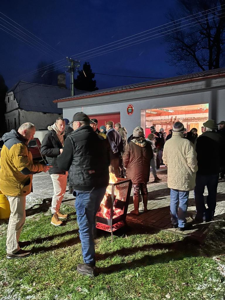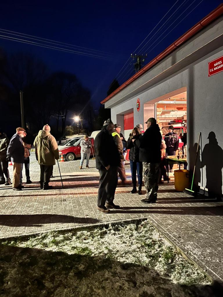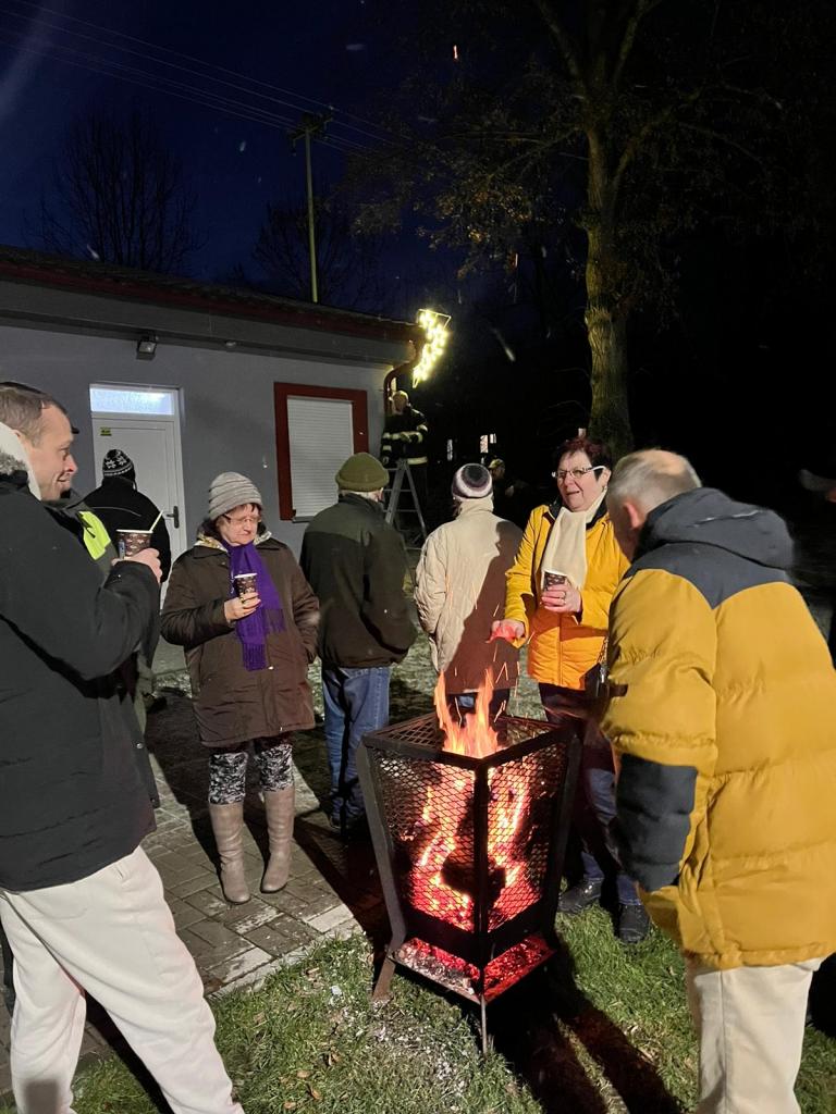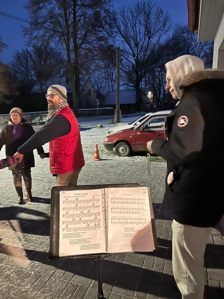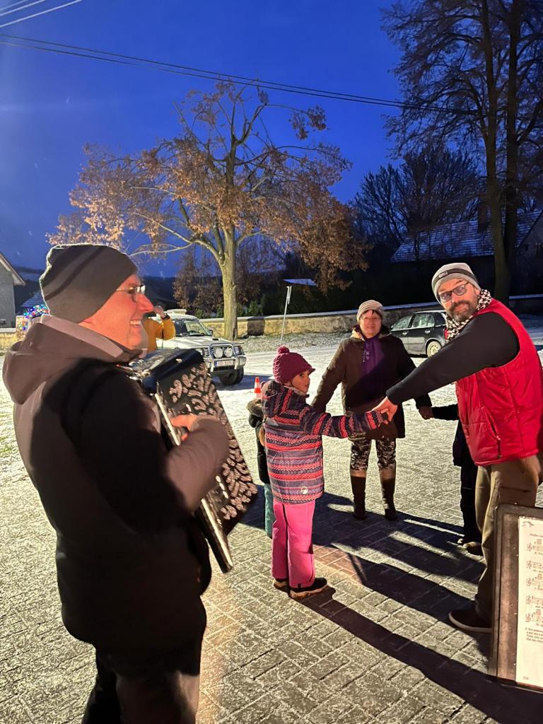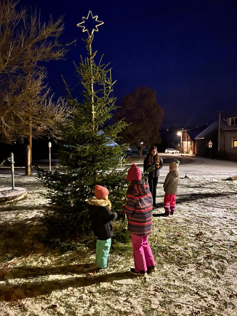 Zpívání, výroba ozdobiček, zdobení a rozsvícení vánočního stromku na návsi T.G.M.