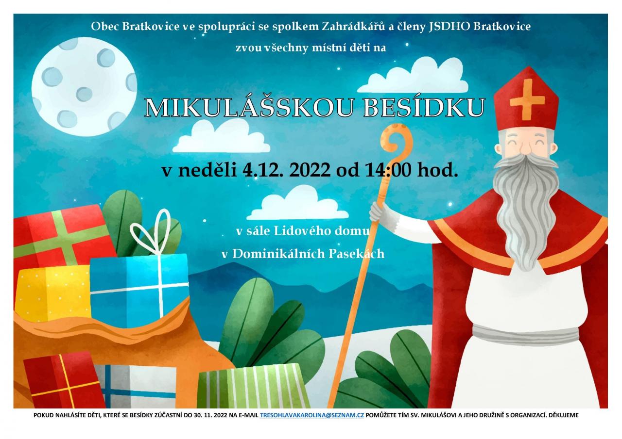 Pokud nahlásíte děti, které se besídky zúčastní do 30. 11. 2022 na e-mail tresohlavakarolina@seznam.cz pomůžete tím Sv. Mikulášovi a jeho družině s organizací. Děkujeme.