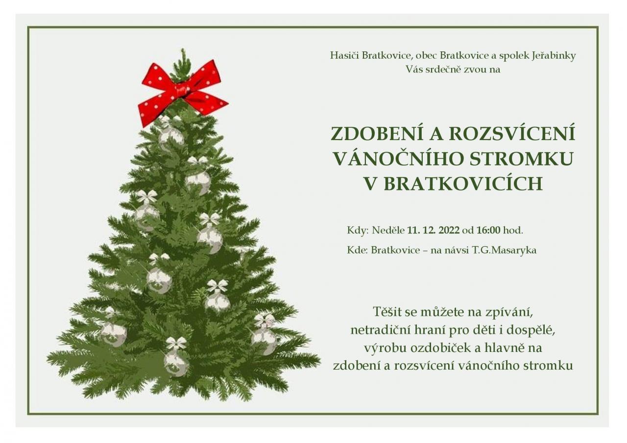 Hasiči Bratkovice, obec Bratkovice a spolek Jeřabinky vás srdečně zvou v neděli 11. 12. 2022 od 16:00 hodin na náves T.G.Masaryka